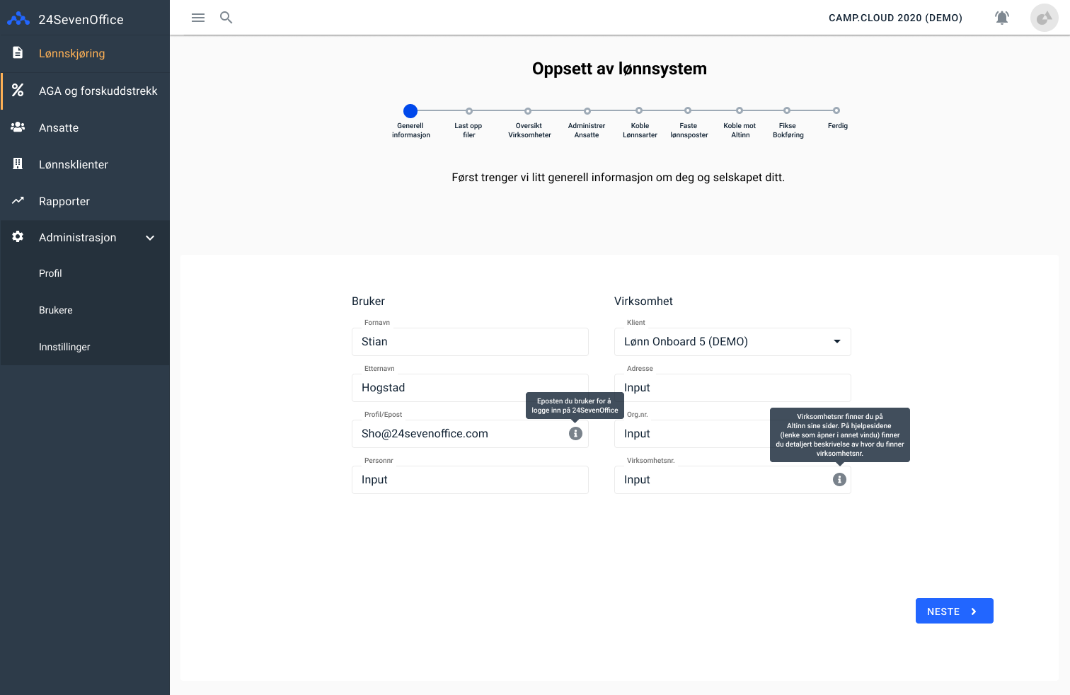 Here is an example of the features I worked on in 24SevenOffice. This is a redesign of their payroll onboarding. It was a complex process that had integrations towards Altinn.