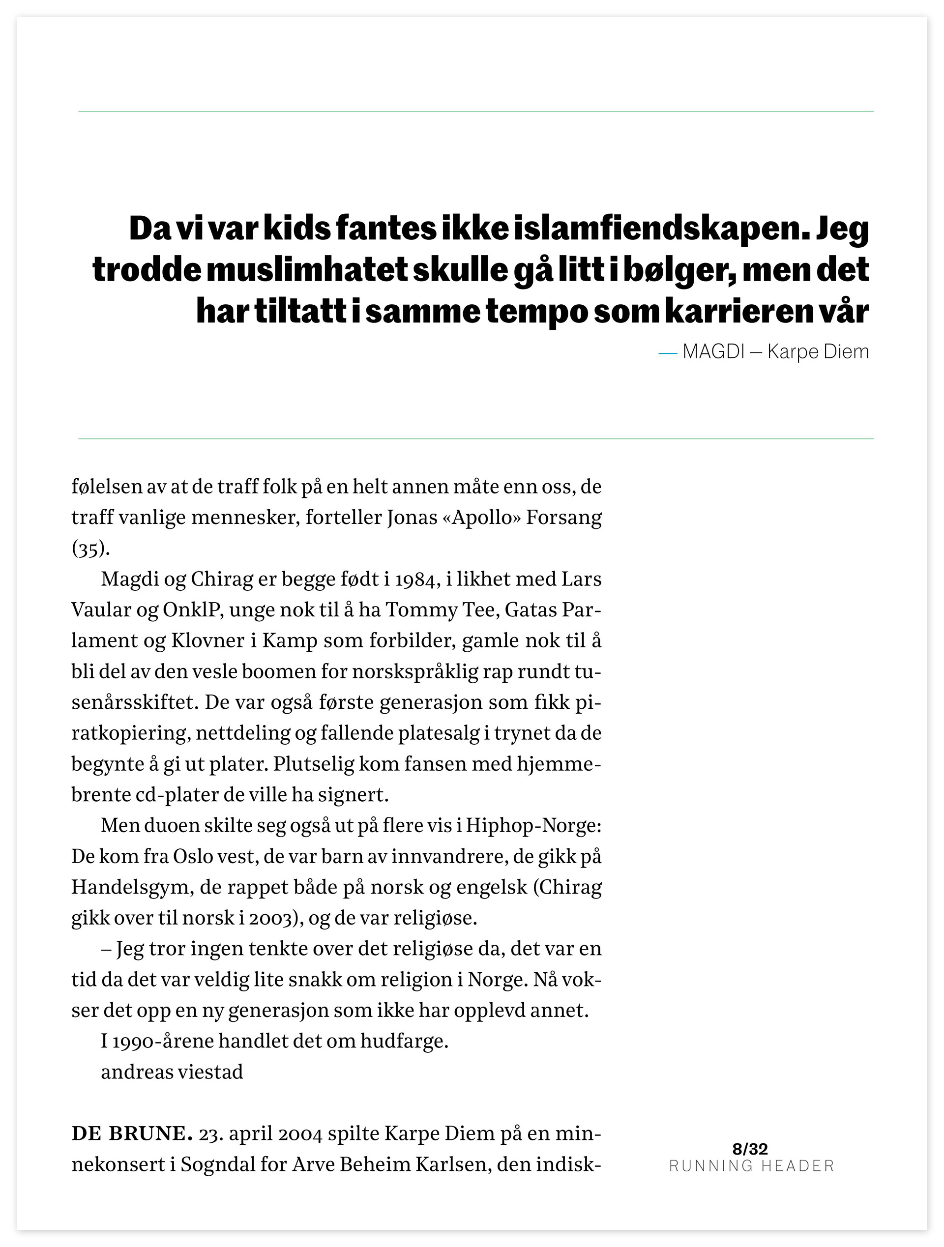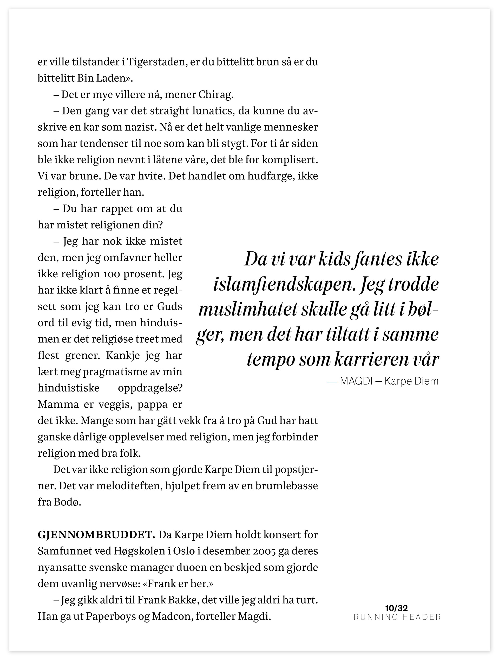 Jeg var involvert i et redesign av D2 i 2016, der min oppgave var å omsette papirdesignet til D2s nettbrett og mobilutgaver. Her er noen av malsidene jeg utarbeidet. Jeg satte også opp stilene, malverket og automasjonen i InDesign.