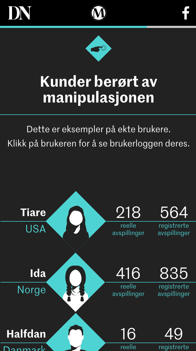 Beyoncés og Kanye Wests lyttertall på Tidal er manipulert. Dette er deler av en digital historiefortelling som finnes her.