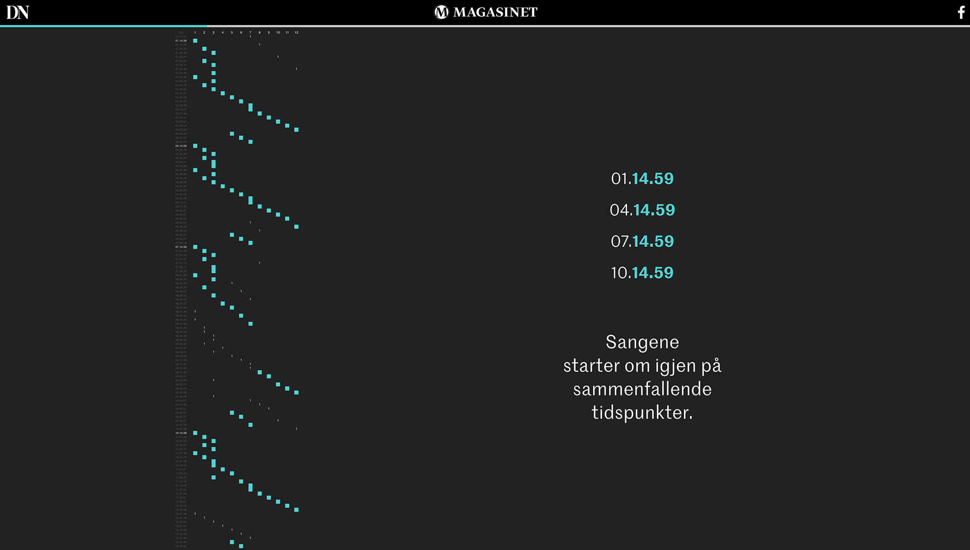 Farge brukes for å fremheve de repeterende mønstrende i lyttingen. Det som ikke er fremhevet er mest sannsynlig vanlige lyttinger.